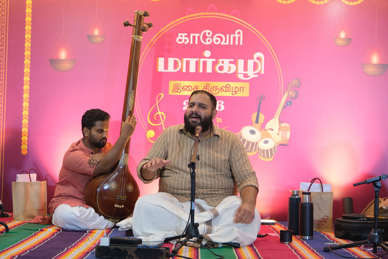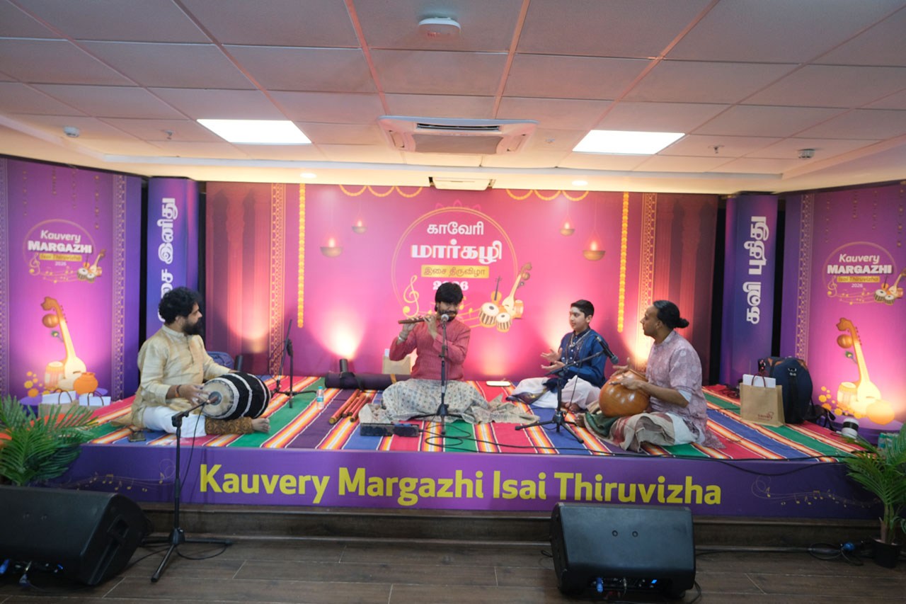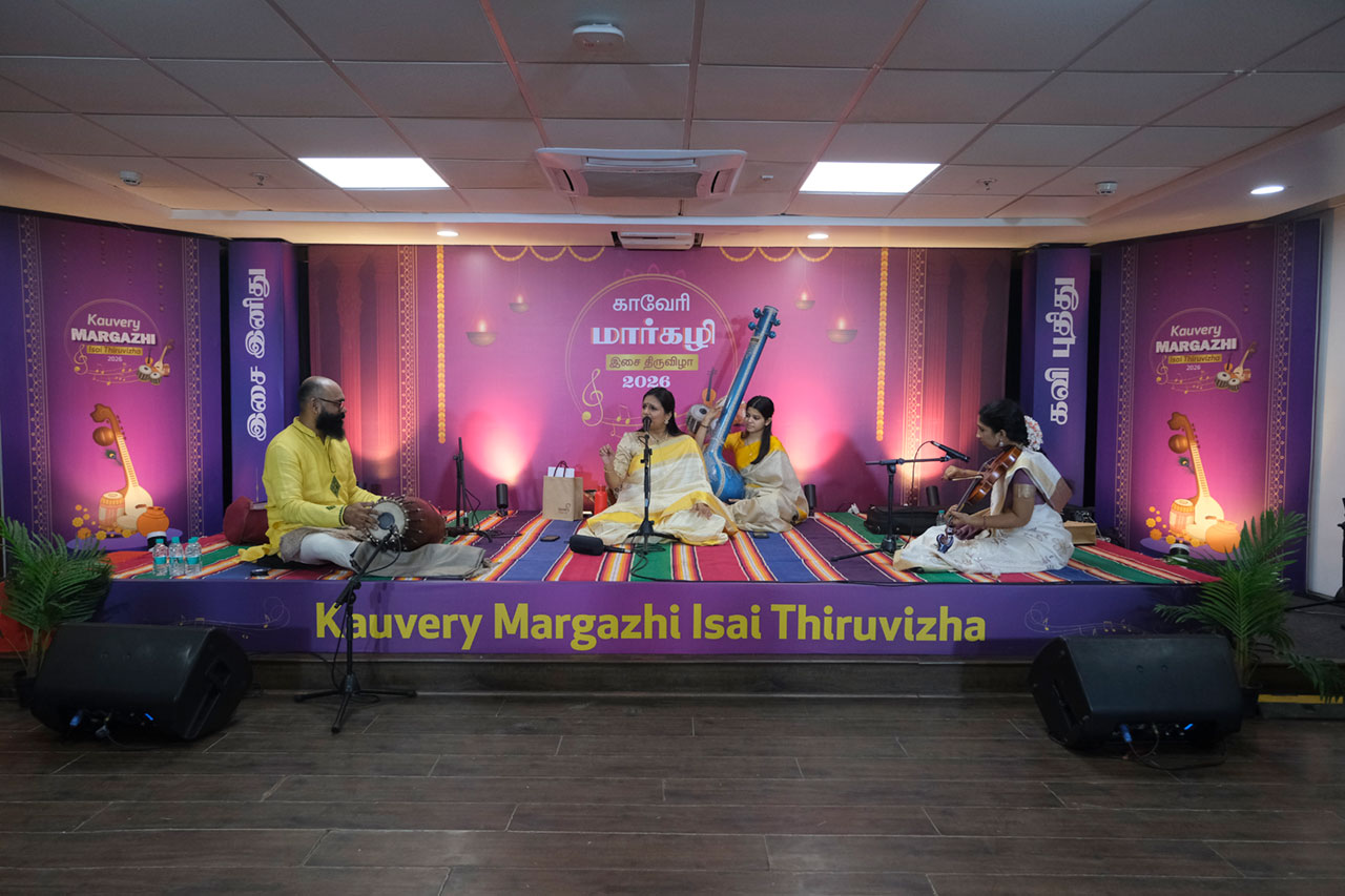 The Margazhi Isai Thiruvizha, held from January 5th to 10th, unfolded as a soulful celebration of classical music and tradition. Each evening featured captivating performances by distinguished artistes, including vocal concerts by Sriranjani Tapasya Santhanagopalan, Vignesh Ishwar, Bharat Sundar, V U M Ayhwarya and the vocal duet by Vidya Kalyanaraman and Vinaya, a melodious flute recital by J. A. Jayant, and a deeply engaging Harikatha by Suchithra Balasubramanian. Adding a special touch to the festival was an afternoon recital by Nandhitha Kannan on January 9th. Together, the festival evenings resonated with the spirit of Margazhi, enriching audiences with timeless music and devotion.