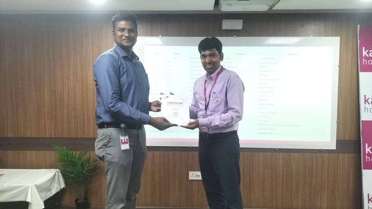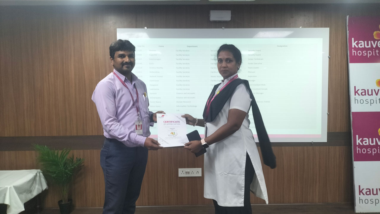 Vanakkam Kauvery, a monthly employee engagement event plays a vital role in fostering strong connection among our employees. It involves the activities of welcoming our newbies to the Kauvery family as they begin their journey with us, appreciate our top performers and recognize best trainers of KHOPE, acknowledging their exceptional commitment to employee development. We extend our heartfelt appreciation to our Thangamanasu winner Ms Rekha – Dept of Clinical Nursing.