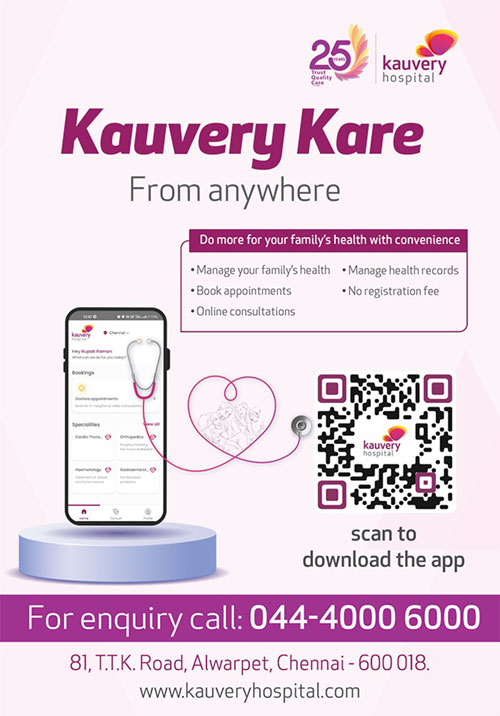 Download Kauvery Kare today and take charge of your health journey with trust, care, and convenience.