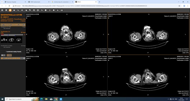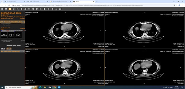 On admission the patient was tachypneic, dyspneic, tachycardia, SpO2: 96% with NIV. He was shifted to IMCU for further management. CT scan pulmonary angiogram showed no evidence of pulmonary thromboembolism, dilated main pulmonary artery. His respiratory failure was managed with non-invasive ventilation support. He was treated with bronchodilators, analgesics, nebulization, PPI, corticosteroids and other supportive measures.