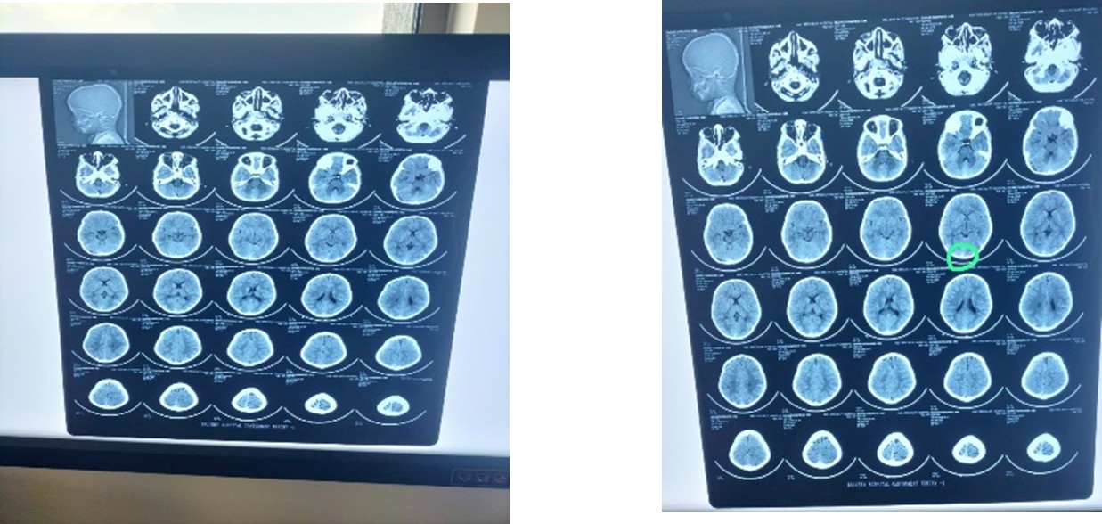 • CT Brain Plain showed thin SAH in left parietal region. Neuro surgeon opinion was obtained and advised conservative management.