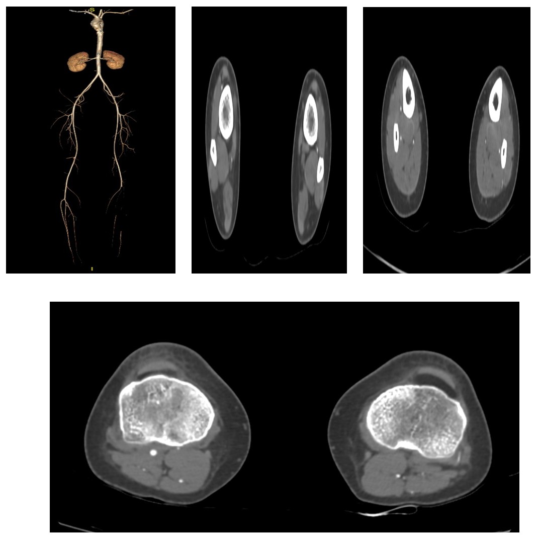 • Thrombosis involving the left proximal popliteal artery, complete occlusion with multiple thin collaterals